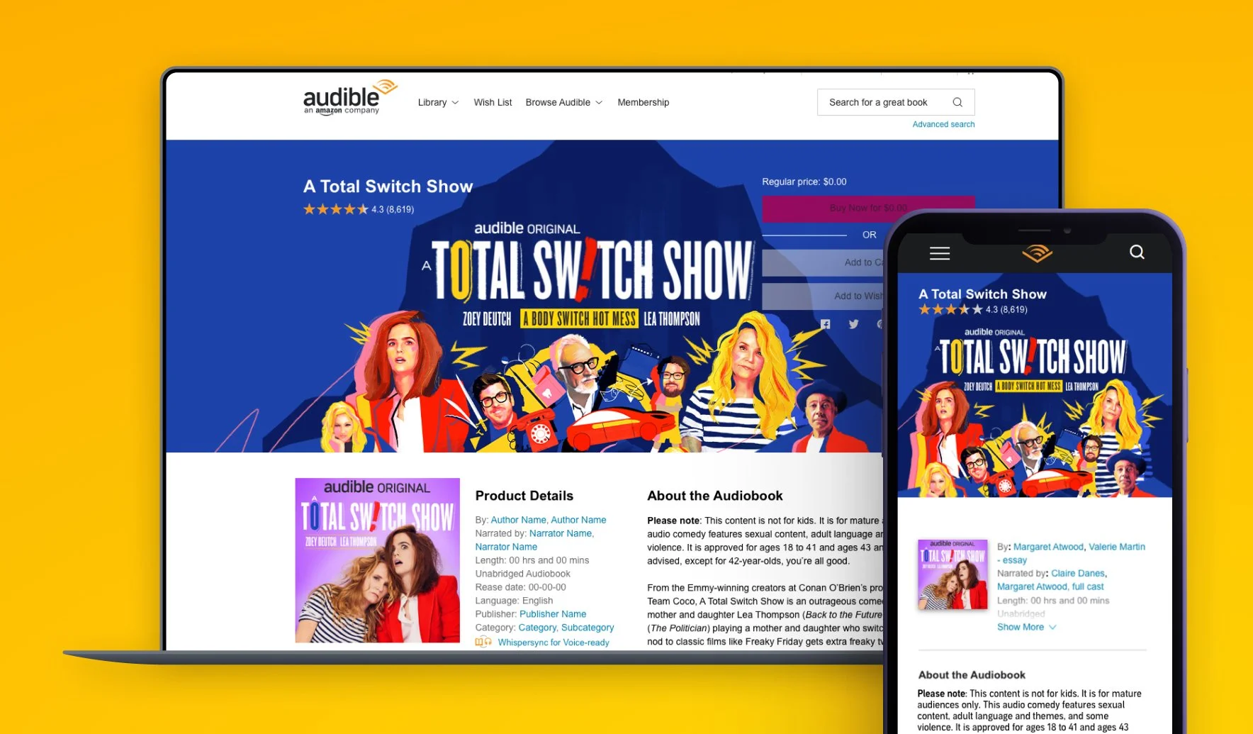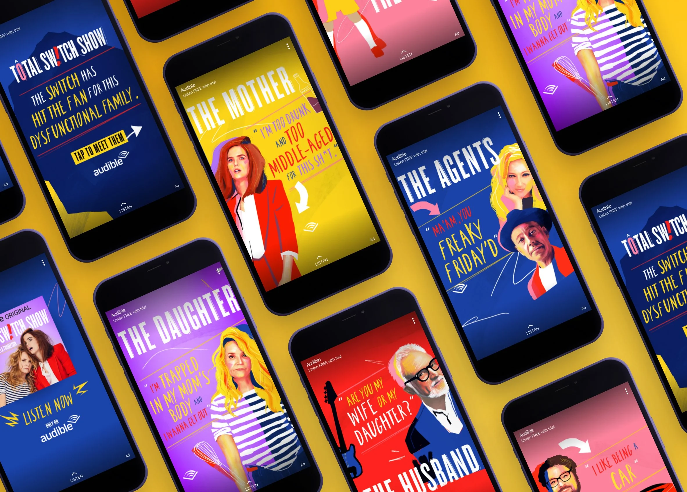 We brought Audible’s outrageous, NSFW ode to Freaky Friday to life with a full 360° launch for A Total Switch Show. Starring real-life mother–daughter duo Lea Thompson and Zoey Deutch, the series flips the body-swap trope on its head—this time, there’s no switching back.