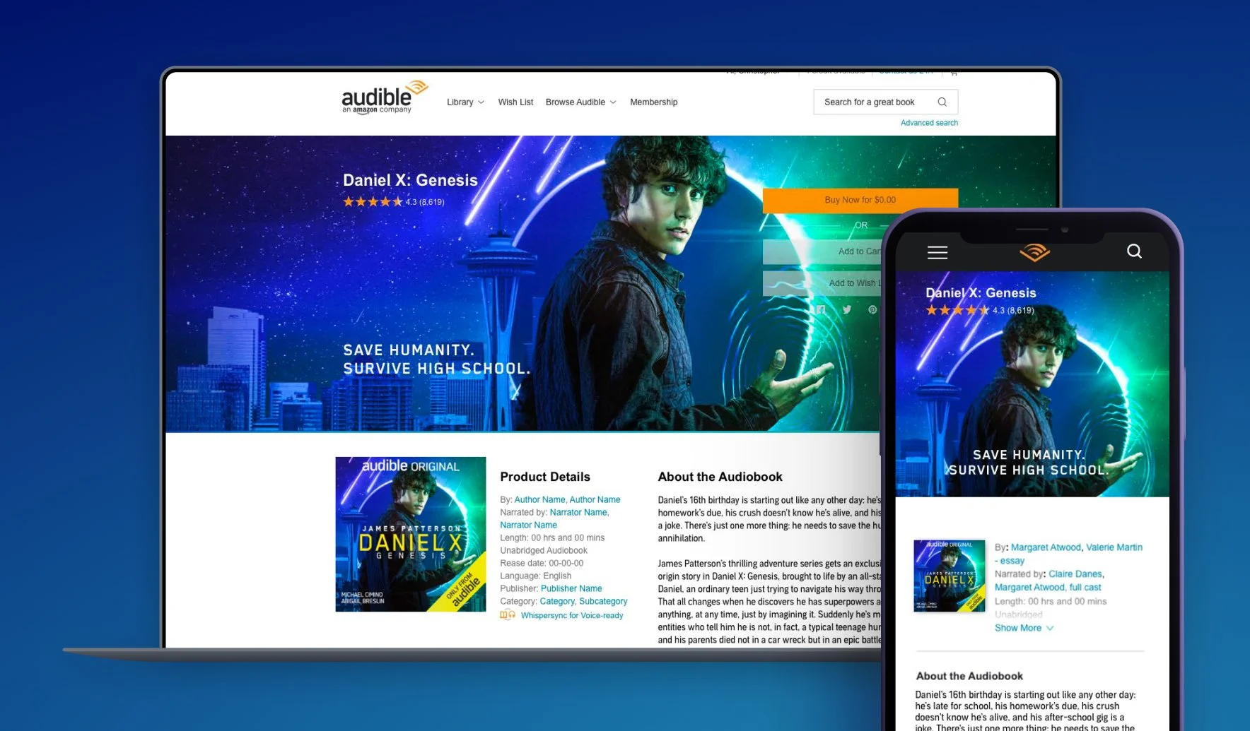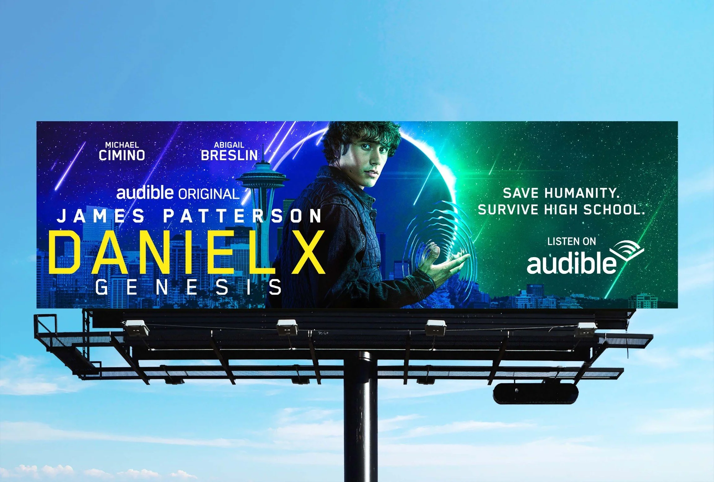 Our campaign captured the youthful energy and dynamic blend of superhero origin, intergalactic adventure, and apocalyptic thriller that defines Daniel X: Genesis. The creative approach balanced excitement and relatability to appeal to listeners across generations—mirroring James Patterson’s signature storytelling style.
